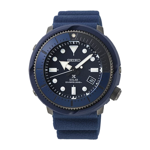Reloj Seiko para buceo sne533p1 Prospex scuba Mar, reloj solar calibre v157 en acero negro y silicona en azul luminiscente para buceo diver´s 200, garantía Seiko