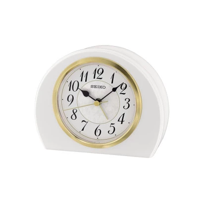 Reloj Seiko de sobremesa qxe054w despertador acabado en piano en blanco, alarma zumbador. Garantía Seiko