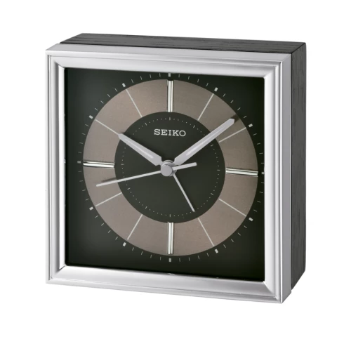 Reloj Seiko sobremesa qxe061s. Caja de madera con plastico de calidad con esfera en color negra y gris. Alarma zumbador. Agujas en plateado con luminiscente. Medidas de 11x11 cm y 5,4 cm de grueso. Garantía oficial Seiko