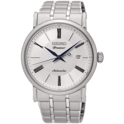 Reloj Seiko srpa17j1 Premier, automático, 40,6 milímetros en acero caja y brazalete con esfera blanca, con calibre 4r35, made in Japan, garantía Seiko