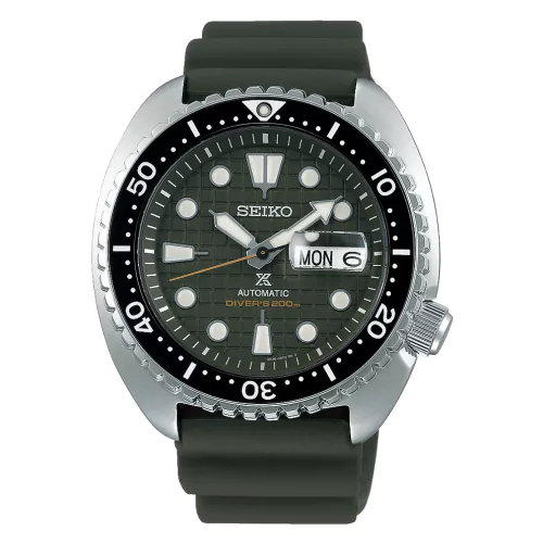 Reloj Seiko rey tortuga para hombre srpe05k1 Prospex, calibre 4r36 en acero esfera verde, silicona cristal zafiro 200 m, garantía Seiko