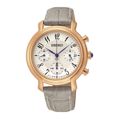Reloj Seiko srw872p1 para mujer con caja en acero dorado y correa en piel con esfera en color blanco, con calibre 7t12 colección Neo Sport, movimiento japan