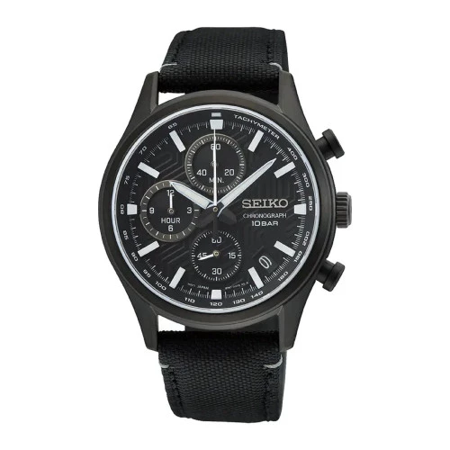 Reloj Seiko ssb421p1 para hombre con caja de acero negro y correa nylon negra, esfera en negro con crono, cristal zafiro, calendario, colección Neo Sports, movimiento japonés