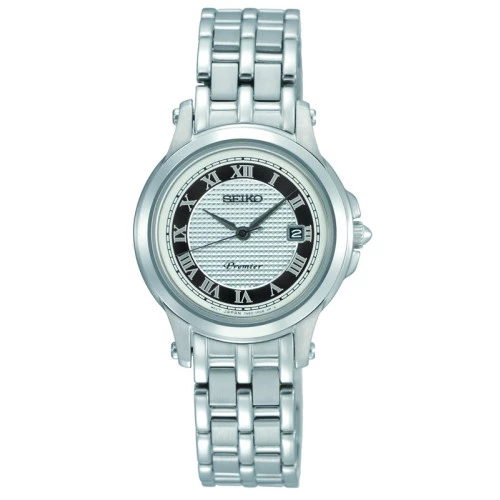 Reloj Seiko sxde41p1 Premier para mujer en acero, esfera en blanco con negro , números romanos, cristal de zafiro. Estuche y garantía Seiko.