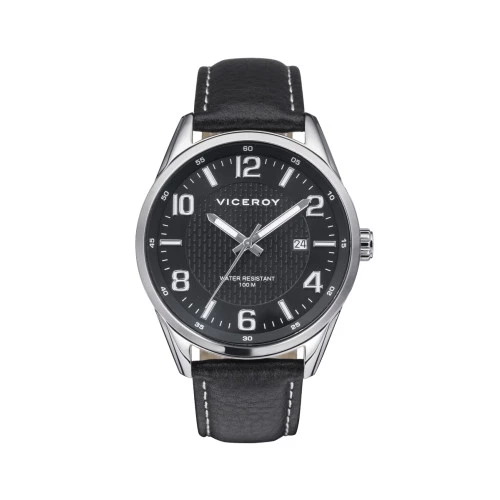 Reloj Viceroy 401013-55 para hombre con caja de acero, esfera negra y correa piel negra, cierre Viceroy de seguridad, garantía Viceroy.