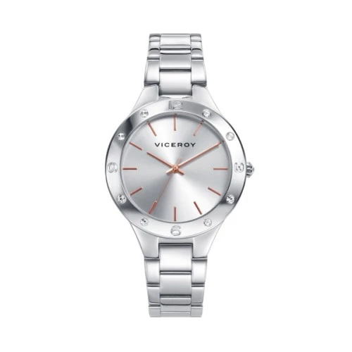 Reloj Viceroy 401044-87 para mujer tres agujas en acero, esfera en plateado y ip rosa, estuche y garantía Viceroy