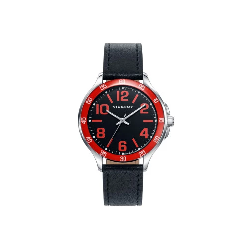 Reloj Viceroy con caja de acero y bisel en rojo y correa en piel negra,