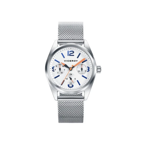 Reloj Viceroy 401103-04 cadete multifunción acero caja y brazalete milanesa, esfera en blanco con azules, reloj pulsera para niño comunión. Garantía Viceroy