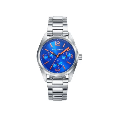 Reloj Viceroy 401105-34 cadete multifunción acero caja y brazalete, esfera azul, naranja los índices, reloj de pulsera para niño comunión. Garantía Viceroy