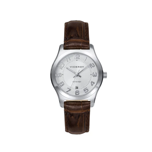 Reloj Viceroy para mujer 401108-05 caja en acero , esfera plateada números arábigos y correa de piel marrón, estuche y garantía Viceroy