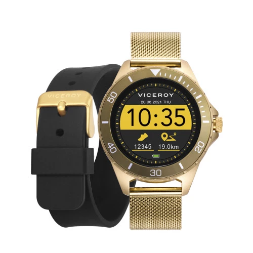 Reloj Viceroy 401115-90 Smartpro smart watch para cadete niño niña en acero dorado con correa adicional silicona negra, Ios y Android. Estuche y garantía Viceroy.