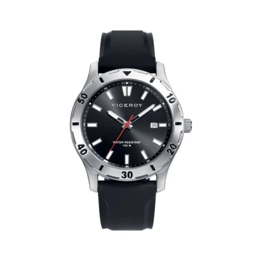 Reloj Viceroy 401129-57 para hombre tres agujas con caja de acero, esfera negra y correa silicona, cierre Viceroy de seguridad, garantía Viceroy.