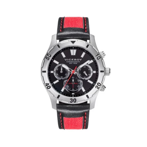 Reloj Viceroy 401133-97 crono para hombre en acero y piel lona, esfera en negra, estuche y garantía Viceroy