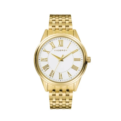 Reloj Viceroy 401151-03 elegante tres agujas para hombre en acero dorado, esfera blanca con números romanos y agujas en dorado, garantía Viceroy