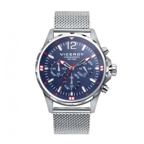 Reloj Viceroy 401247-35 cronógrafo para hombre con caja de acero, esfera azul con malla milanesa cierre Viceroy de seguridad, garantía Viceroy.