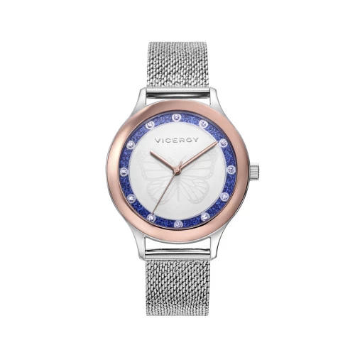 Reloj Viceroy 401264-37 para mujer tres agujas, esfera mariposa, malla milanesa acero, estuche y garantía Viceroy