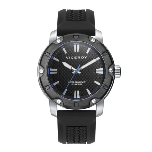 Caja de acero y correa de silicona negra con cierre de hebilla de seguridad Viceroy.