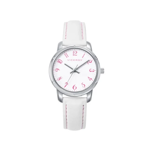 Reloj Viceroy niña 401274-04 reloj de pulsera para niña comunión colección Sweet. Reloj Viceroy de acero y correa de piel blanca, con diámetro de 30 milímetros. Esfera en blanco con números arábigos en rosa, agujas plateadas. Resistente al agua 30 metros. Estuche y garantía Viceroy