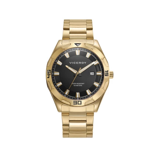 Reloj Viceroy 401283-57 para hombre en acero dorado caja y brazalete, esfera en negro, estuche y garantía Viceroy
