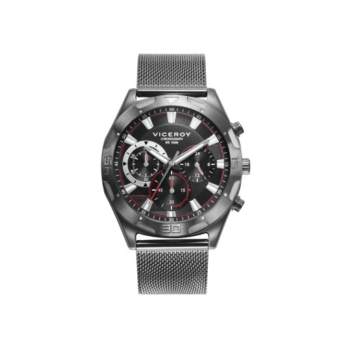 Reloj Viceroy 401285-57 crono para hombre en acero caja y brazalete ip gris, esfera en negro con toques rojos, estuche y garantía Viceroy