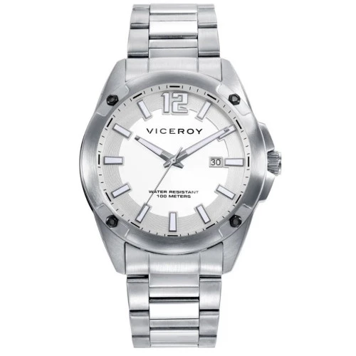 Reloj Viceroy 401395-05 reloj pulsera tres agujas colección Heat para hombre. Caja de acero y brazalete de acero con cierre desplegable y solapa de seguridad Viceroy. Esfera de color blanco con calendario en la posición de las tres. Agujas e índices luminiscentes. Fondo cerrado a rosca. Tamaño de reloj para hombre 43 milímetros. Resistente al agua 100 metros. Estuche y garantía Viceroy