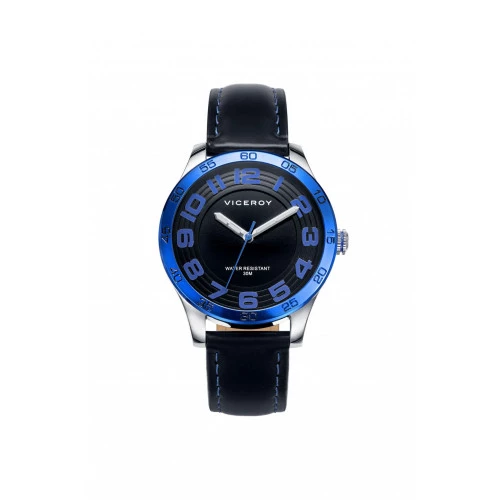 Reloj Viceroy unisex tamaño cadete con caja de acero con diámetro de la caja 34 milímetros y correa de piel cuero, bisel azul en aluminio