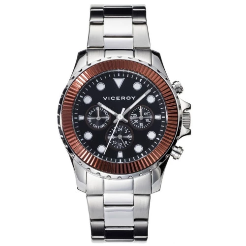 Reloj Viceroy colección sportif caballero 40459-47 para hombre, negro con caja y brazalete en acero y bisel chocolate, cronógrafo 50 metros, estuche y garantía Viceroy