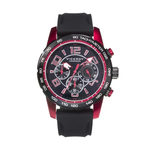 Reloj Viceroy colección sportif caballero 40461-75 para hombre, negro con caja ip rojo y bisel negro con brazalete en caucho , cronógrafo 50 metros, estuche y garantía Viceroy