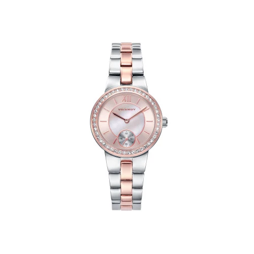 Reloj joya Viceroy para mujer fino y elegante con circonitas esfera en salmón, bisel en rosa brazalete bicolor ip rosa 40954-93, trae estuche y garantía Viceroy