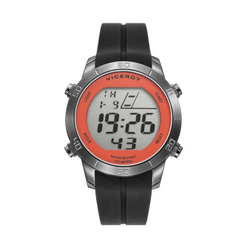 Reloj Viceroy unisex tamaño cadete con caja de acero y bisel en naranja, diámetro de la caja 36,5 milímetros y correa de silicona negra y cierre de hebilla de seguridad Viceroy
