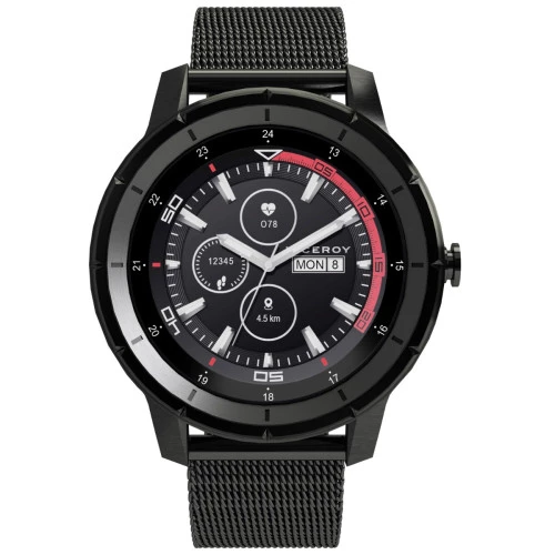 Reloj Viceroy 41111-10 Smartpro para hombre. Caja de aluminio y brazalete de acero malla con cierre deslizante Viceroy de seguridad en acabado ip gris. Trae correa de silicona adicional en negro. Medida de caja 48 milímetros de diámetro. Fondo cerrado con tornillos. Cinco pantallas diferentes. Tipo de bateria Lithium polymer battery con capacidad 230mAh. Voltaje 3,7 V conectar el cargador USB a un ordenador respetando siempre las indicaciones máximas del voltaje. Tiempo de carga de dos horas, duración de la batería en stand-by aproximadamente 3-4 días. Con uso normal 1 a 2 días. Pantalla tipo round touch TFT color screen 1.28" y resolución 240*240. Funciones del reloj smartpro Viceroy: llamadas de voz desde el propio reloj, cronógrafo, sedentarismo, cuentapasos, electrocardiograma. calculadora, camara remorta, pulsaciones, notificaciones, alarma, gestión del sueño, distancia, presión arterial, localizador de teléfono, gestión de deportes, oxígeno en sangre, mensajería, calendario, control de música y calorías. APP Viceroy Smart Now Smart Por Ios y Android. Estuche Viceroy y garantía oficial Viceroy