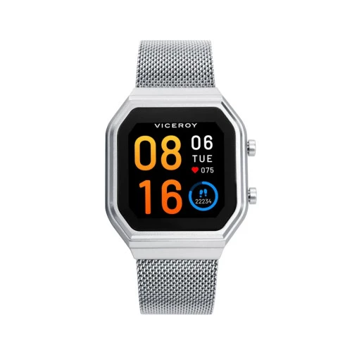Reloj Viceroy 41121-00 Smartpro unisex. Reloj inteligente smartwatch con caja de aluminio con brazalete correa milanesa con cierre deslizante con cierre Viceroy de seguridad. Medida de caja 38 x 46 milímetros. Pantalla táctil con esferas propias para elegir. Podrás recibir todas las notificaciones de las llamadas y de los mensajes, oxígeno en sangre, medir tus pulsaciones, cuenta pasos, distancia realizada, gestión de deportes, cronógrafo, control de calidad del sueño y controlar la música de tu móvil. Compatible con con teléfonos con sistema operativo Android 5.0 o superior, en IOS 10 o superior. Perfecto para la vida diaria. Estuche y garantía oficial Viceroy