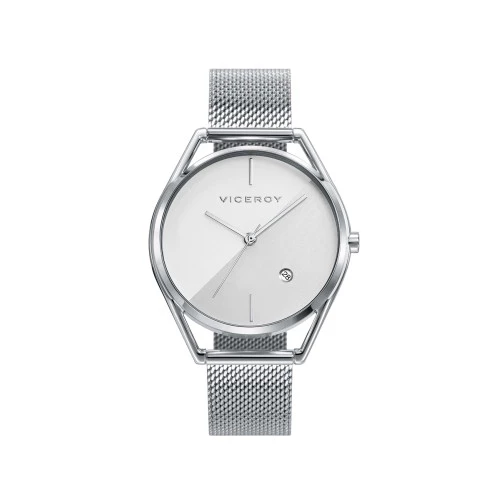 Reloj Viceroy 42392-07 para mujer en acero, caja y correa milanesa, esfera en blanco y plateado, garantía Viceroy