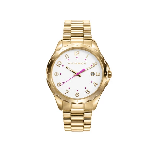 Reloj Viceroy para mujer 42396-05 en acero caja y brazalete dorado, esfera en blanco claro con calendario, estuche y garantía Viceroy