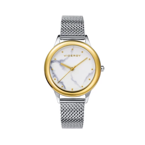 Reloj Viceroy para mujer en acero bicolor 42408-07 esfera en blanco con morados amarmolado, brazalete malla, estuche y garantía Viceroy
