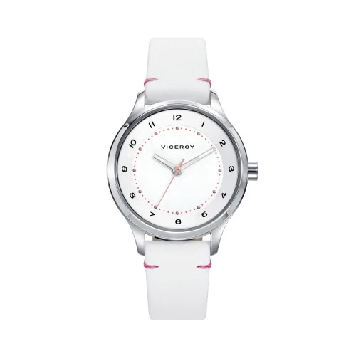 Reloj Viceroy para niña cadete en acero y correa en piel blanca 461112-047 esfera en blanco con índices números arábigos, reloj comunión. Garantía Viceroy.