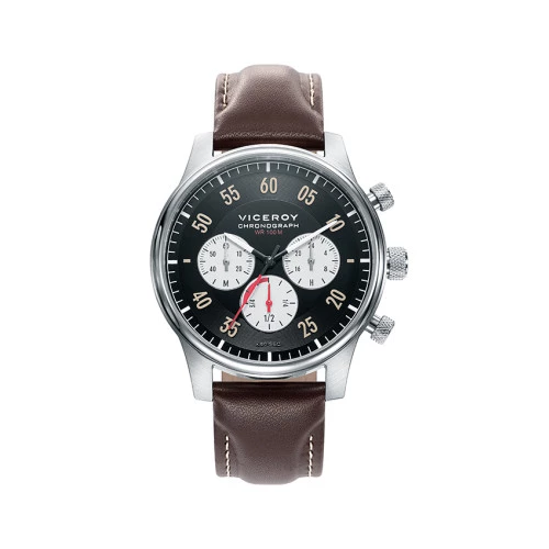 Reloj Viceroy cronógrafo para hombre fino y elegante en acero y piel, esfera en marrón 46721-54, agujas luminiscentes, estuche y garantía Viceroy