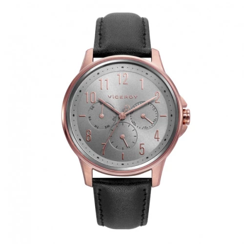 Caja de acero con ip rosa con correa de piel negra, con cierre de hebilla de seguridad Viceroy