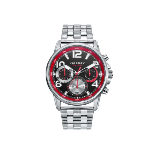 Reloj Viceroy 46797-55 cadete crono acero caja y brazalete, esfera negra y roja, reloj de pulsera para niño comunión. Garantía Viceroy