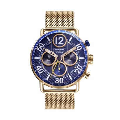 Reloj Viceroy 46817-34 crono para hombre en acero dorado caja y brazalete, malla milanesa, esfera azul, estuche y garantía Viceroy