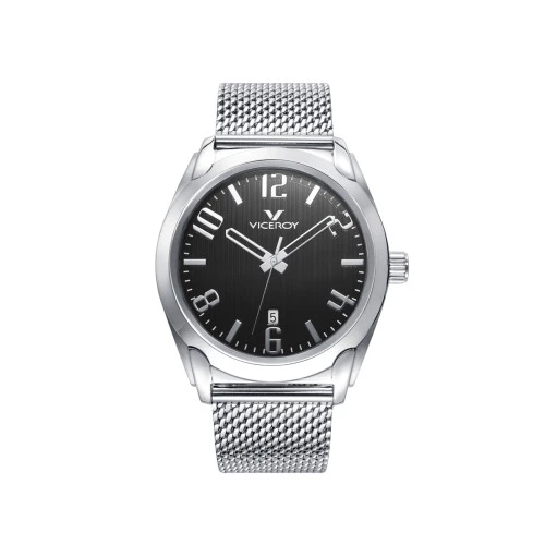 Reloj Viceroy 471195-59 tres agujas para hombre en acero caja y brazalete, malla milanesa, esfera negra con índices y agujas plateadas, estuche y garantía Viceroy