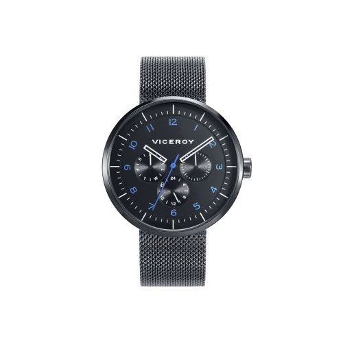 Reloj Viceroy 471213-54 multifunción en redondo colección air para hombre en acero, caja y correa milanesa en ip gris, color de esfera en negro, garantía Viceroy