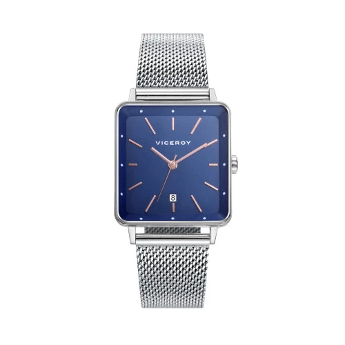 Reloj Viceroy 471236-37 en cuadrado colección Air para mujer en acero, caja y correa milanesa, color de esfera en azul, garantía Viceroy