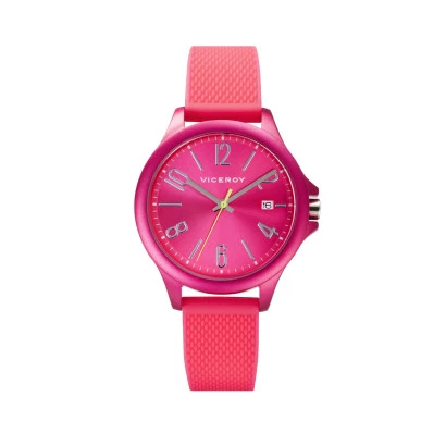 Reloj Viceroy 471248-75 para mujer, en aluminio, esfera en rosa calendario, correa silicona rosa, estuche y garantía Viceroy