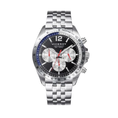 Reloj Viceroy 471275-55 para hombre, en acero caja y brazalete, esfera en negro y gris, agujas e índices luminiscentes, cronógrafo, resistente al agua 100 metros. Estuche y garantía Viceroy