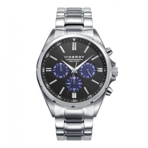 Reloj Viceroy 471295-57 para hombre, en acero caja y brazalete, esfera en negro y azul, agujas luminiscentes, cronógrafo, resistente al agua 100 metros. Estuche y garantía Viceroy