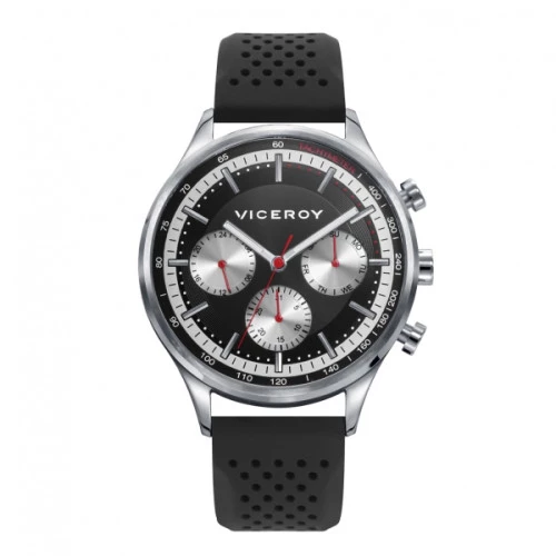 Reloj Viceroy 471317-57 para hombre con caja de acero, esfera en negro y plateado con correa silicona negra y cierre Viceroy de seguridad, calendario completo, garantía Viceroy.