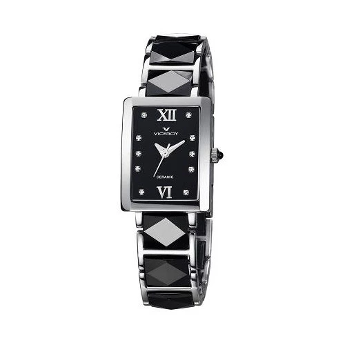 Reloj Viceroy cuadrado para mujer en acero y cerámica negra 47606 53 colección cerámica, con esfera en negro con piedras en indices y agujas en plateado. Cristal mineral