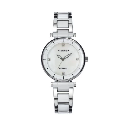 Reloj Viceroy colección cerámica para señora con caja de acero en redondo, esfera y bisel en blanco.