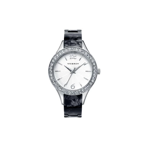 Reloj de mujer Viceroy fino y elegante con caja de acero con bisel con piedras 32 milímetros de diamaetro, correa brazalete en tipo carey gris en diferentes tonos, reloj elegante con esfera blanca con relieve e indices en plateado, reloj de señora